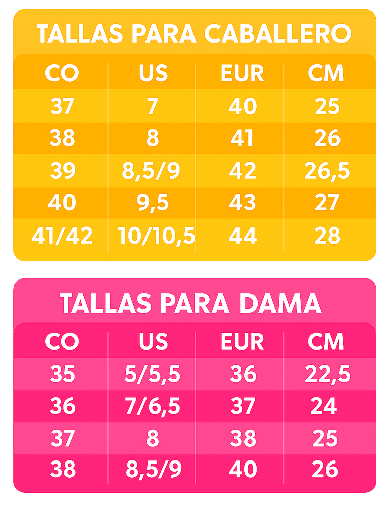 “Para acertar con tu talla ideal, te recomendamos medir tu pie en centímetros (de punta a talón) y compararlo con nuestra tabla de medidas. Es un tip sencillo que asegura mayor comodidad y ayuda a reducir devoluciones. ¡Así tendrás la talla perfecta desde tu primera compra!”